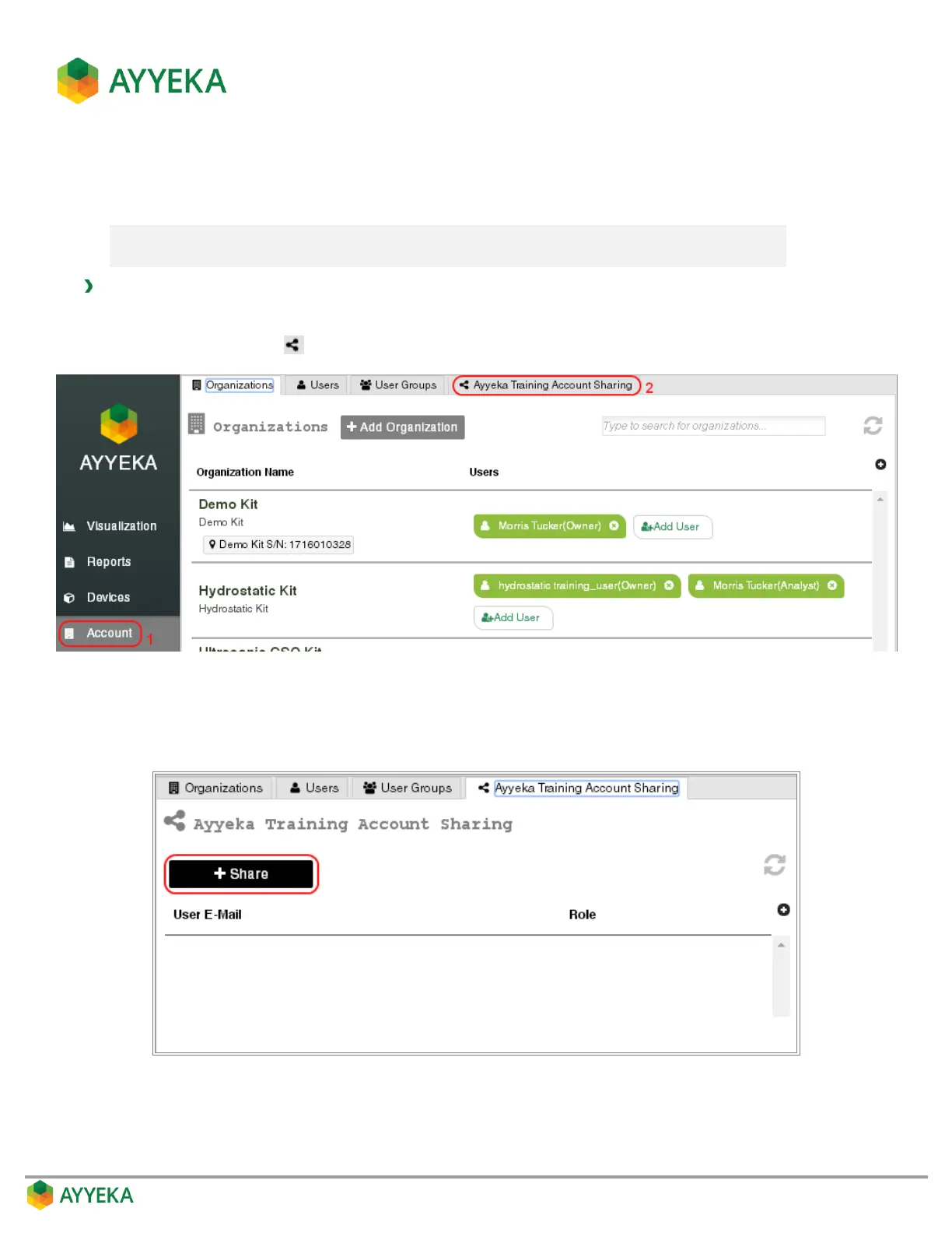 An account owner can share the account with any Ayyeka user, as well as define that user’s role in the account.