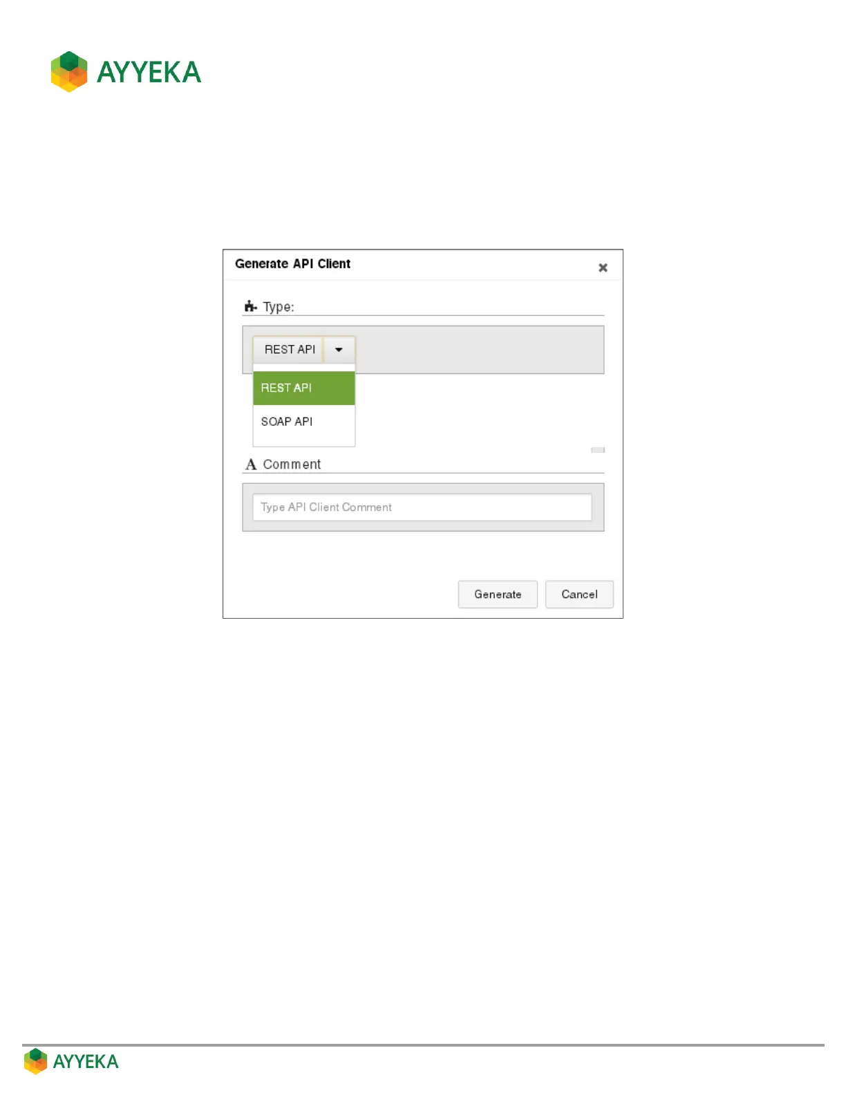 a. In Type, select the type of API client you wish to generate: REST API or SOAP API.