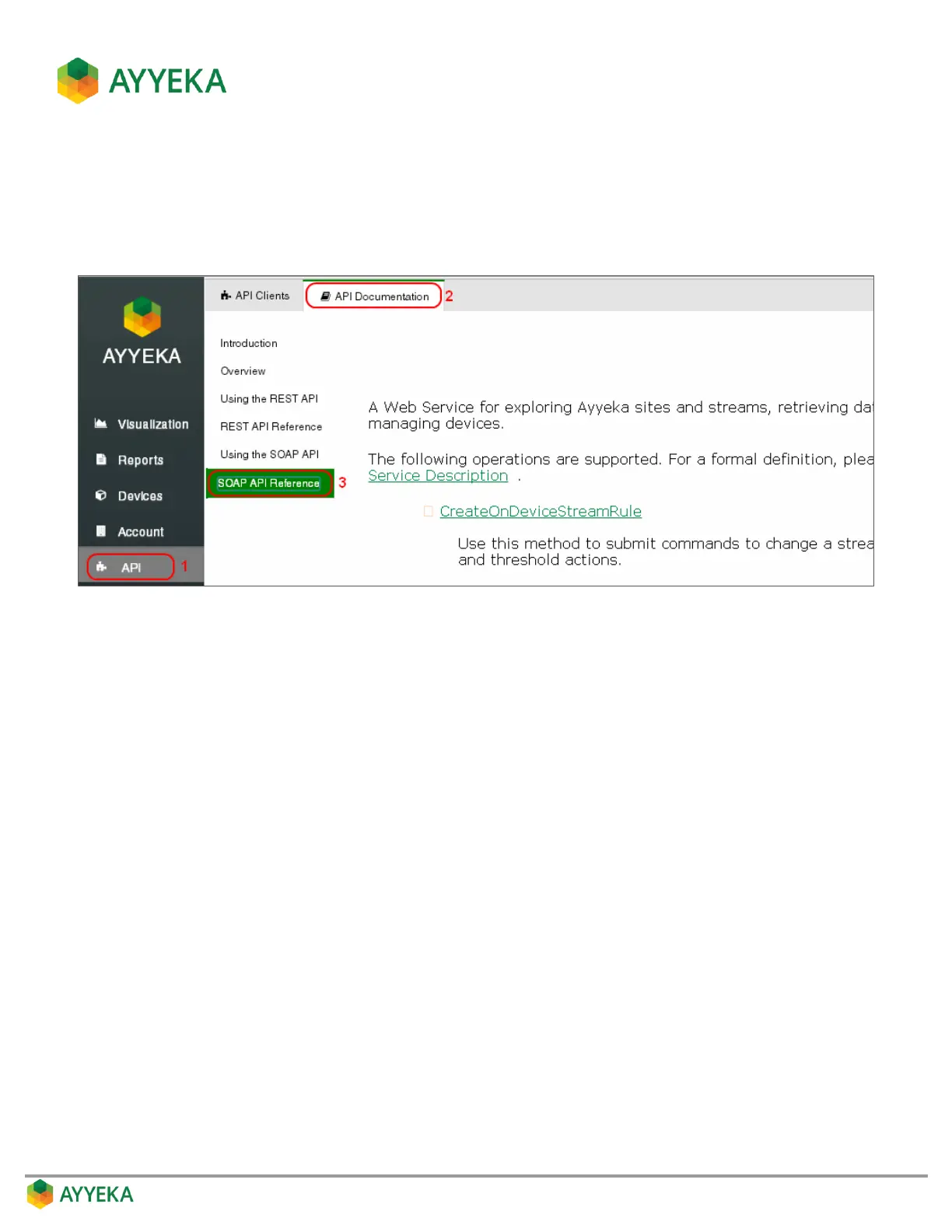 The methods available for SOAP API access to Ayyeka data are listed and explained in the SOAP API Reference