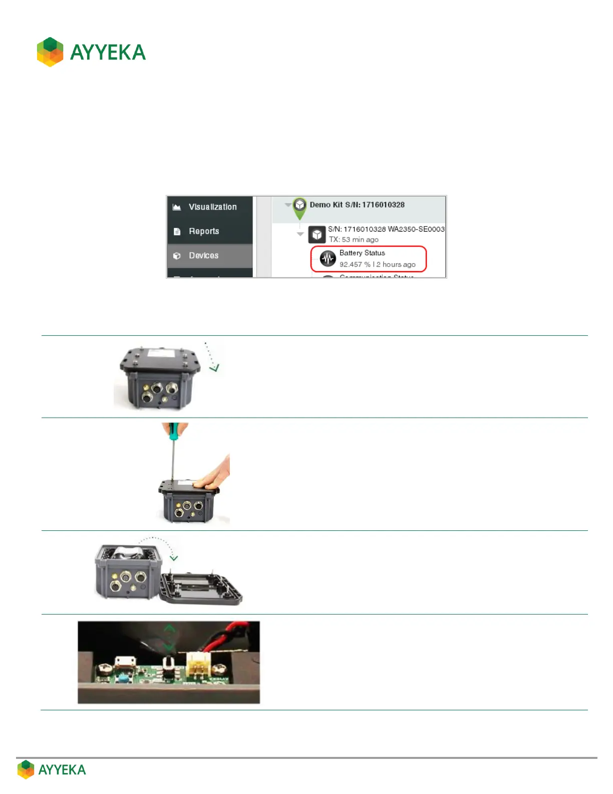 Replacement batteries can be ordered from Ayyeka, part no. WA00101.