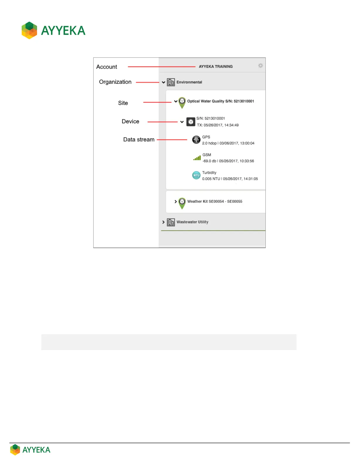 In the example shown above, the AYYEKA TRAINING account consists of two organizations, Environmental and