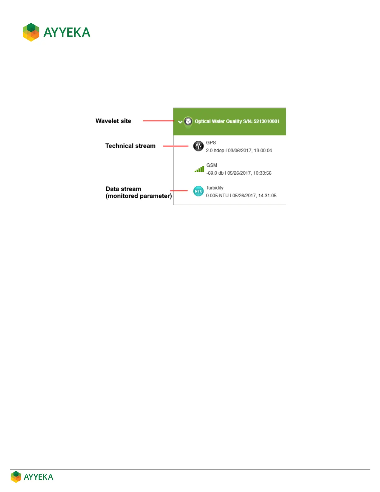 Sites Tree pane – lists all Wavelet sites and their data streams: