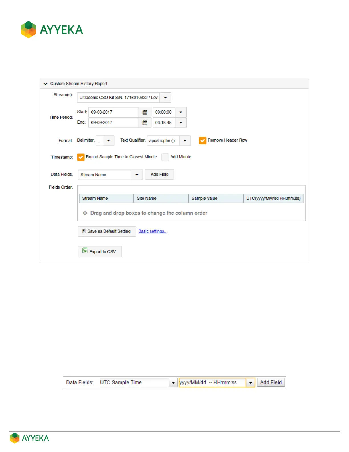 Figure 18: Custom Stream History Report – Specifying Fields and Method of Display