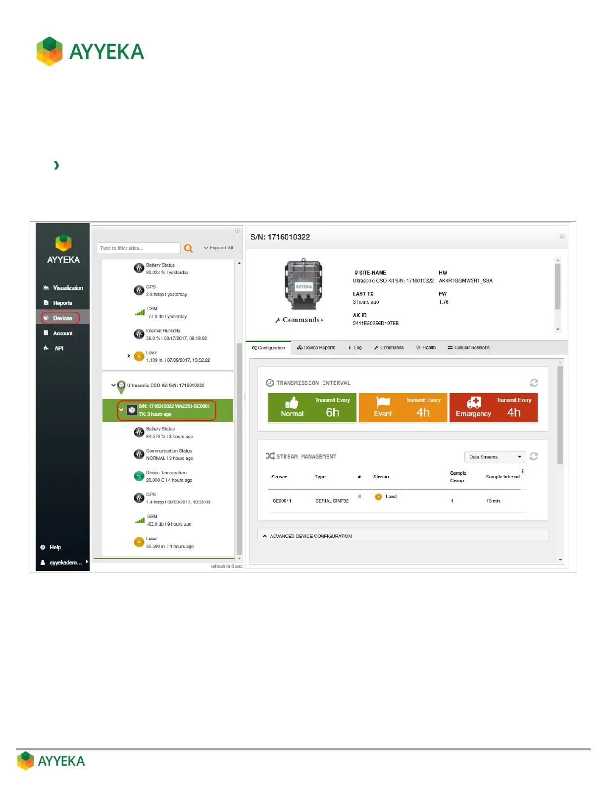 firmware version, Ayyeka ID and ICC ID (=ID of the SIM card).