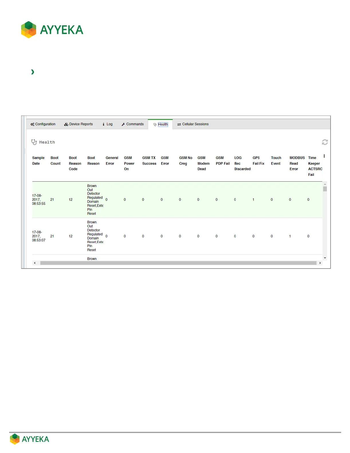 This tab is intended for device troubleshooting, to help identify the possible source of issues.