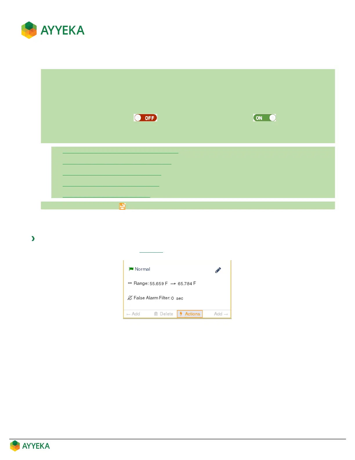 For each threshold, you can define what actions the device should take when stream samples fall within the range