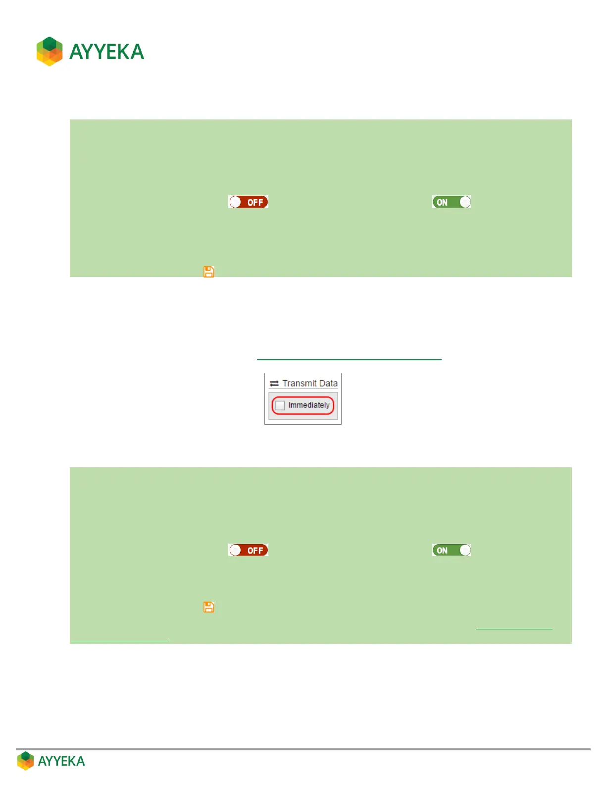 6. Under Transmit Data, check the Immediately box if you want the device to transmit data immediately