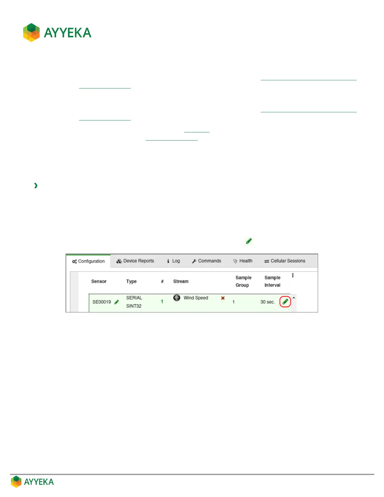 whose sampling interval you wish to modify. A green pencil icon appears at the right end of the line.