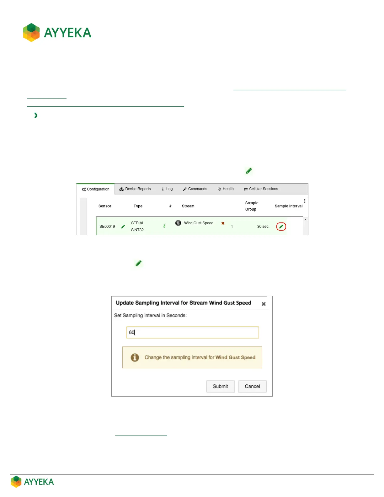 7. If you changed a stream’s sampling interval value, you must reboot the device in order for the change to
