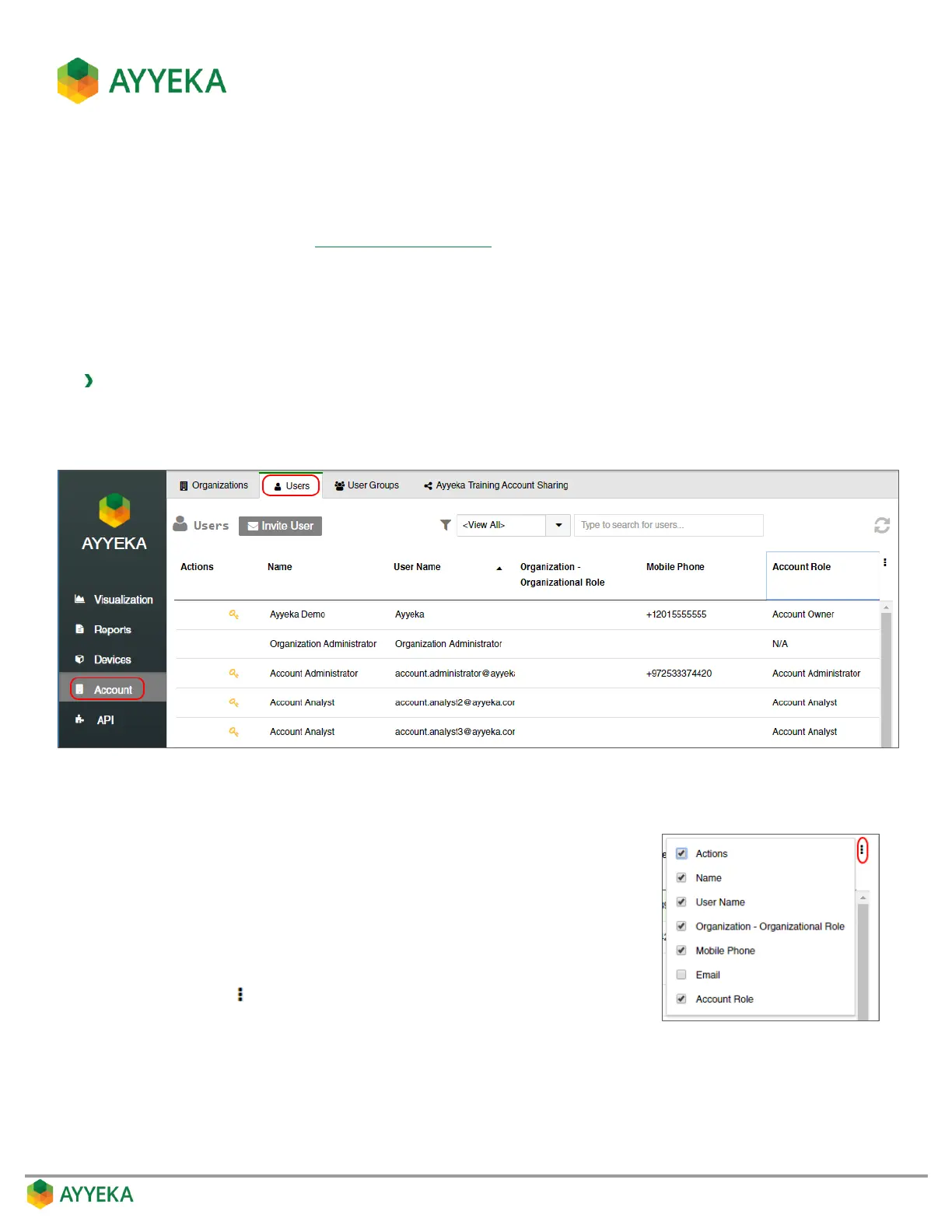 The Users table shows, for each user in your organization (or account):