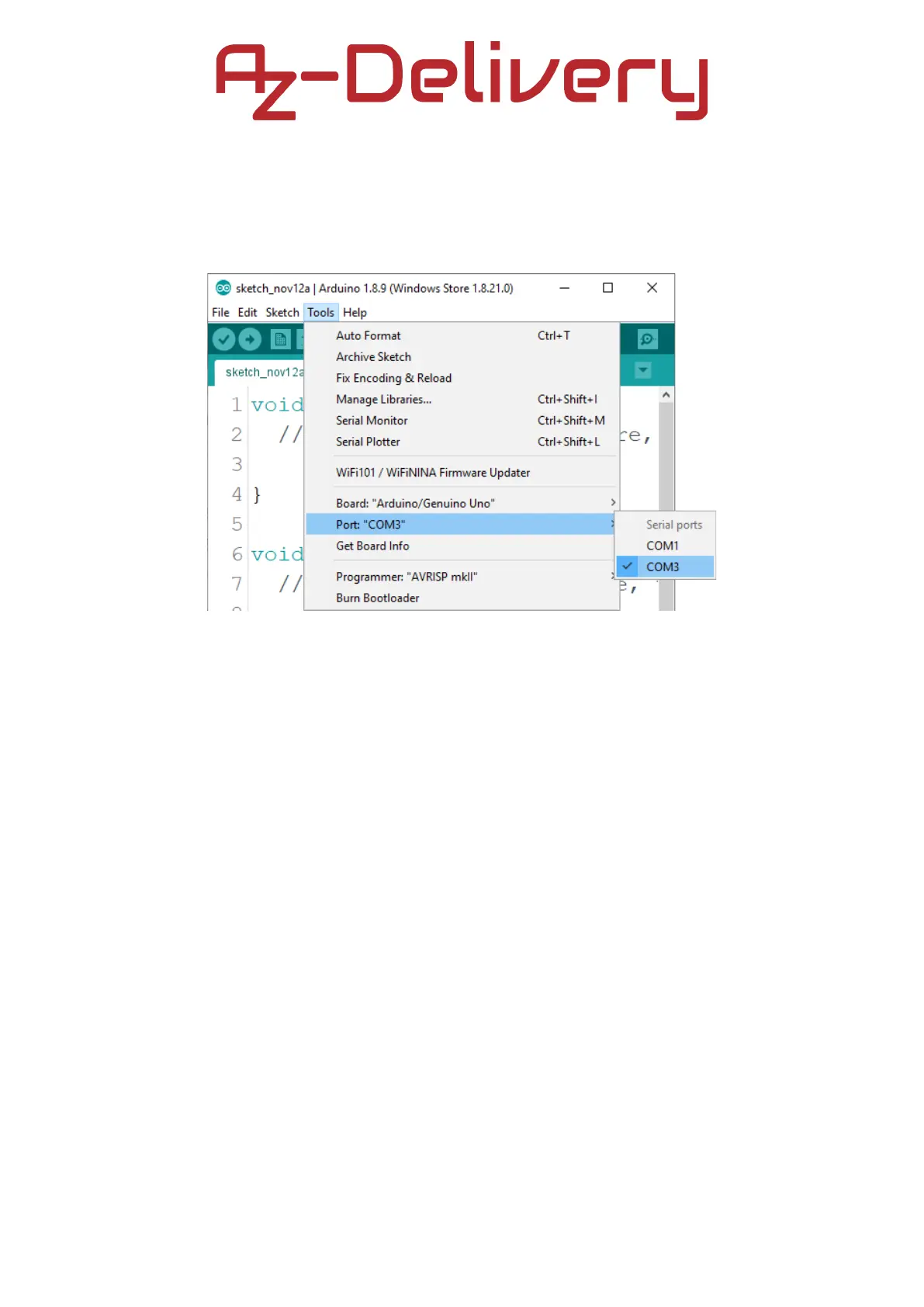 If the Arduino IDE is used on Windows, port names are as follows: