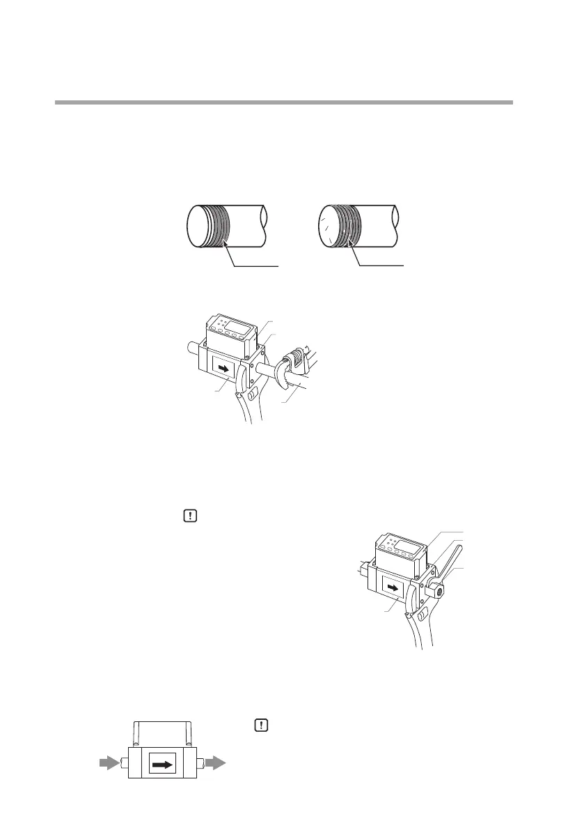 When connecting the piping, hold the flowmeter by putting a