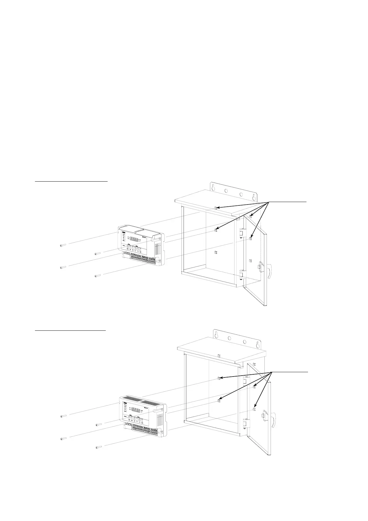 Install the controller on the inside wall of the rain-proof case with four M4 screws (supplied with the MIZCON Plus