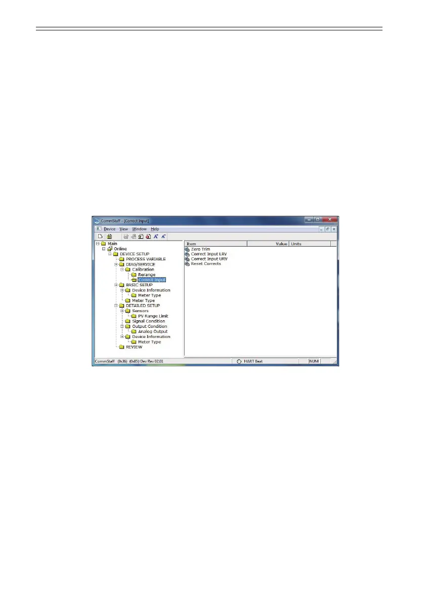 Select DEVICE SETUPo DIAG/SERVICE o Calibration o Correct Input.