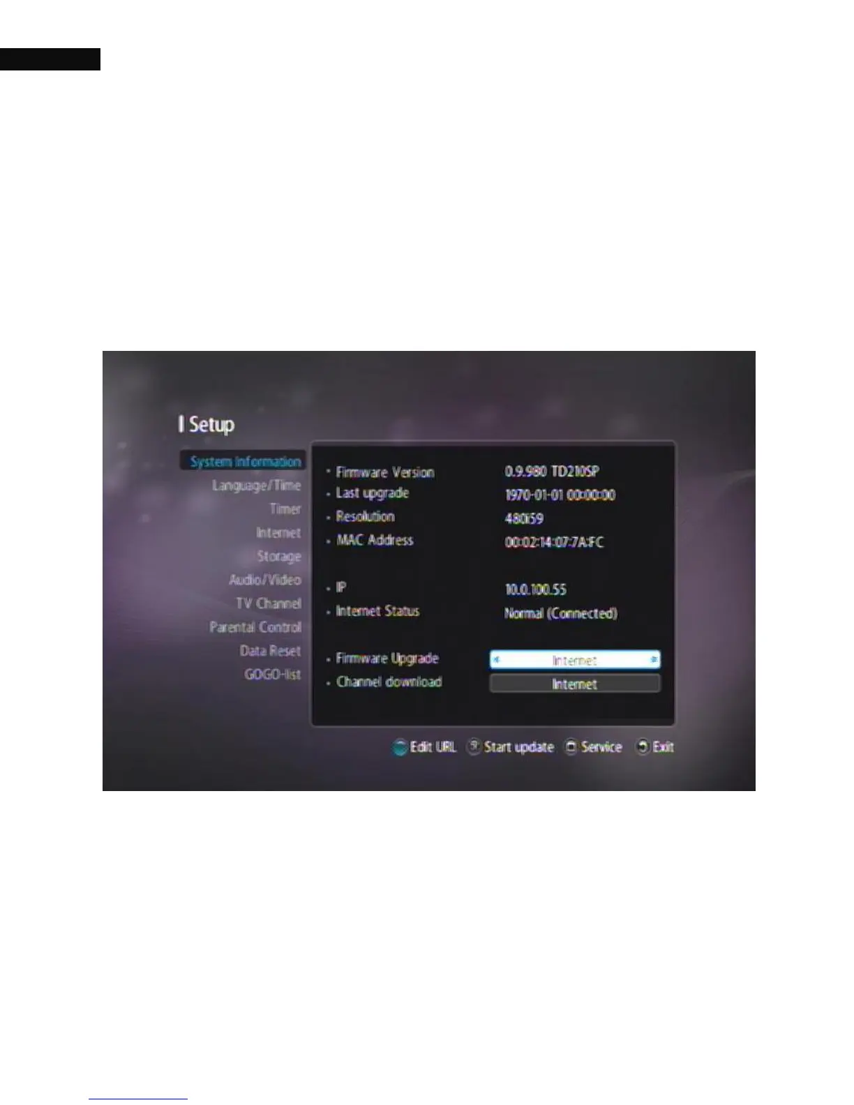 before downloading a new firmware. Select the Settings > System