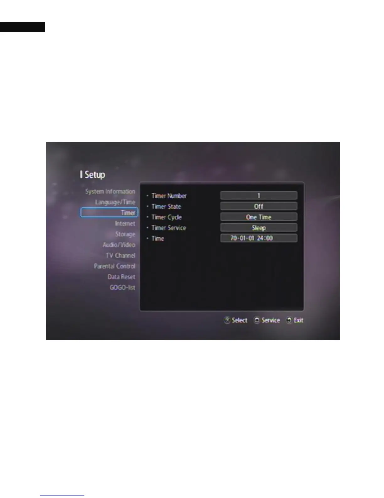 automatically. Timer Menu allows you to select the timer number, state,