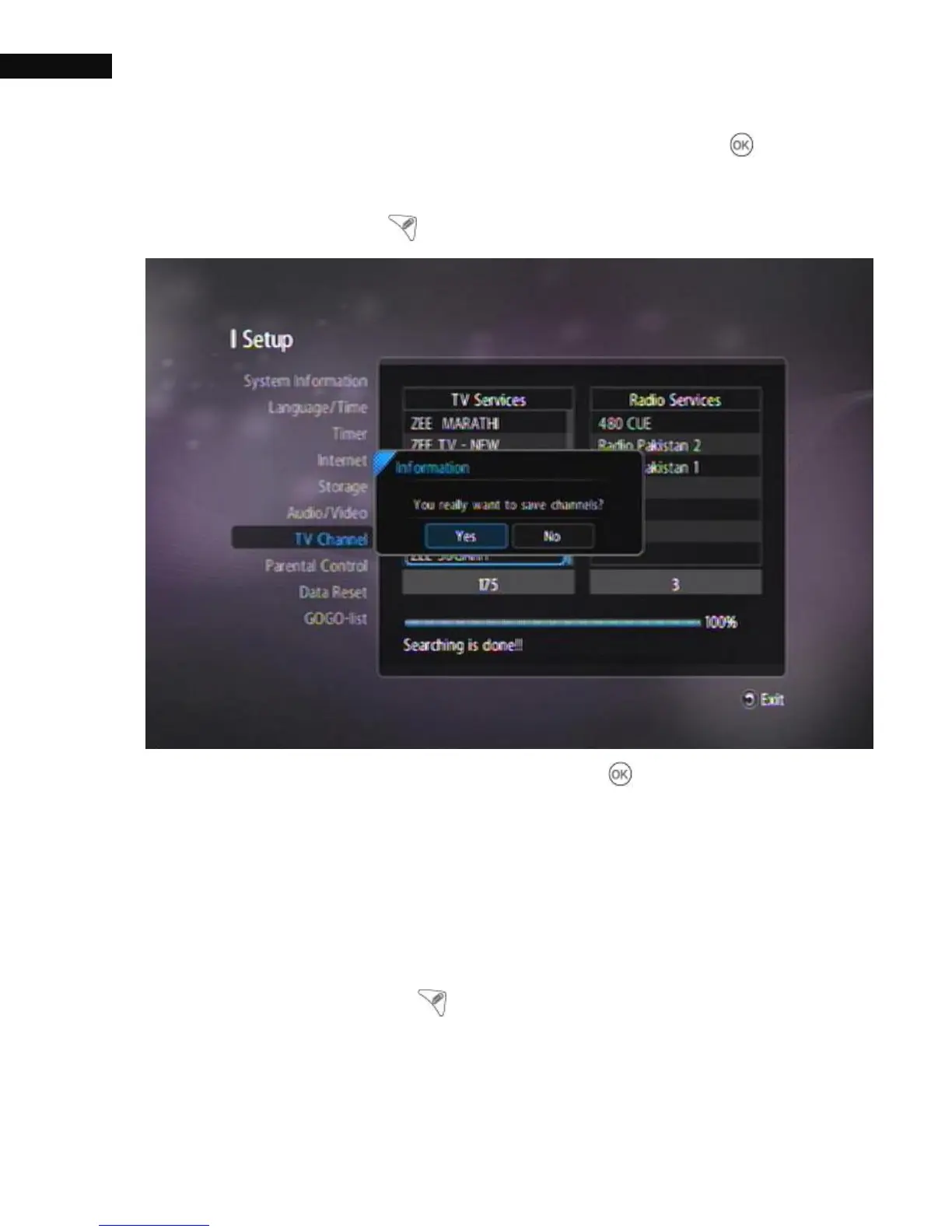 To save the searched channel list, press the OK( ) button.
