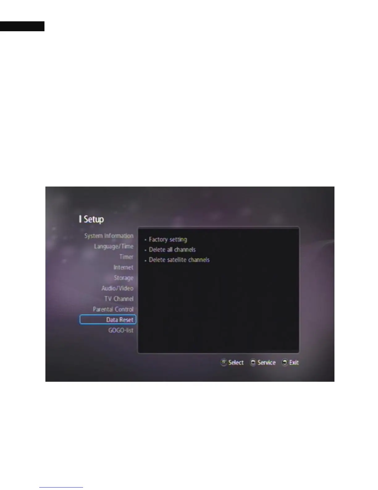 If you need to reset the digital receiver back to the factory default