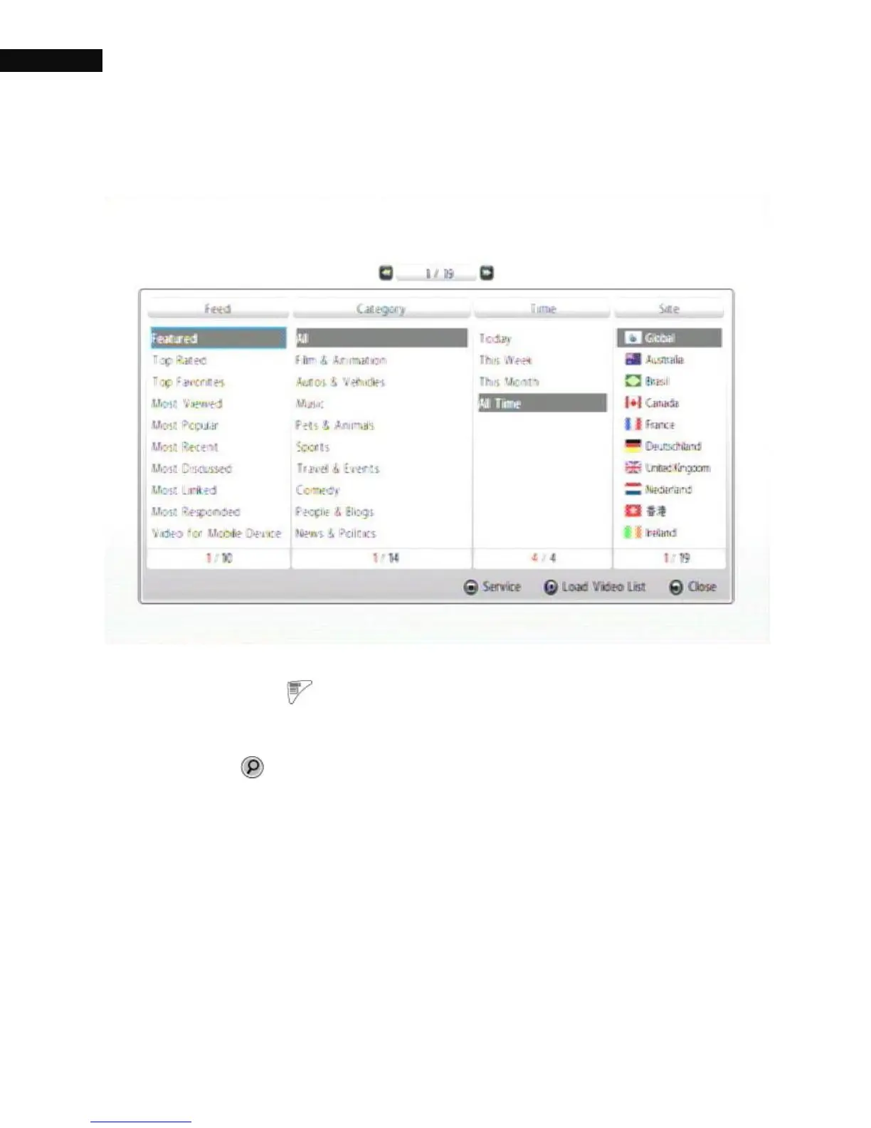 Press the Menu ( ) button and select Feed, Category, Time and Site.