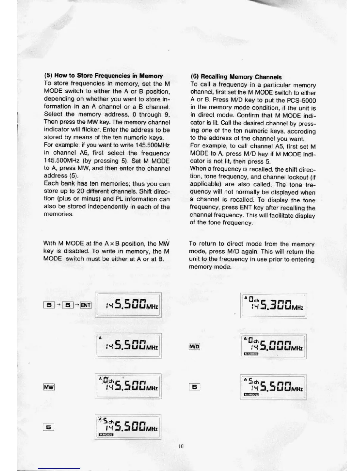 Azden PCS-5000 - How to Store Frequencies in Memory; Recalling Memory Channels