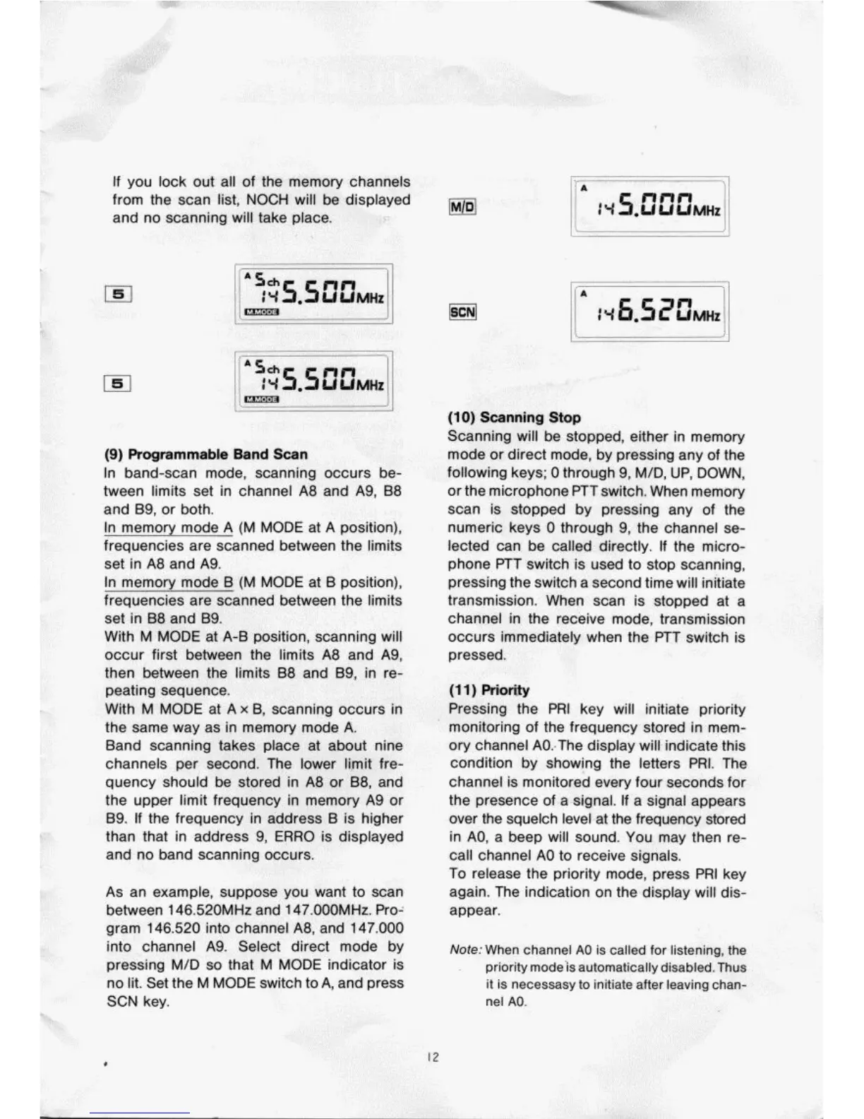 Azden PCS-5000 - Programmable Band Scan; Scanning Stop; Priority