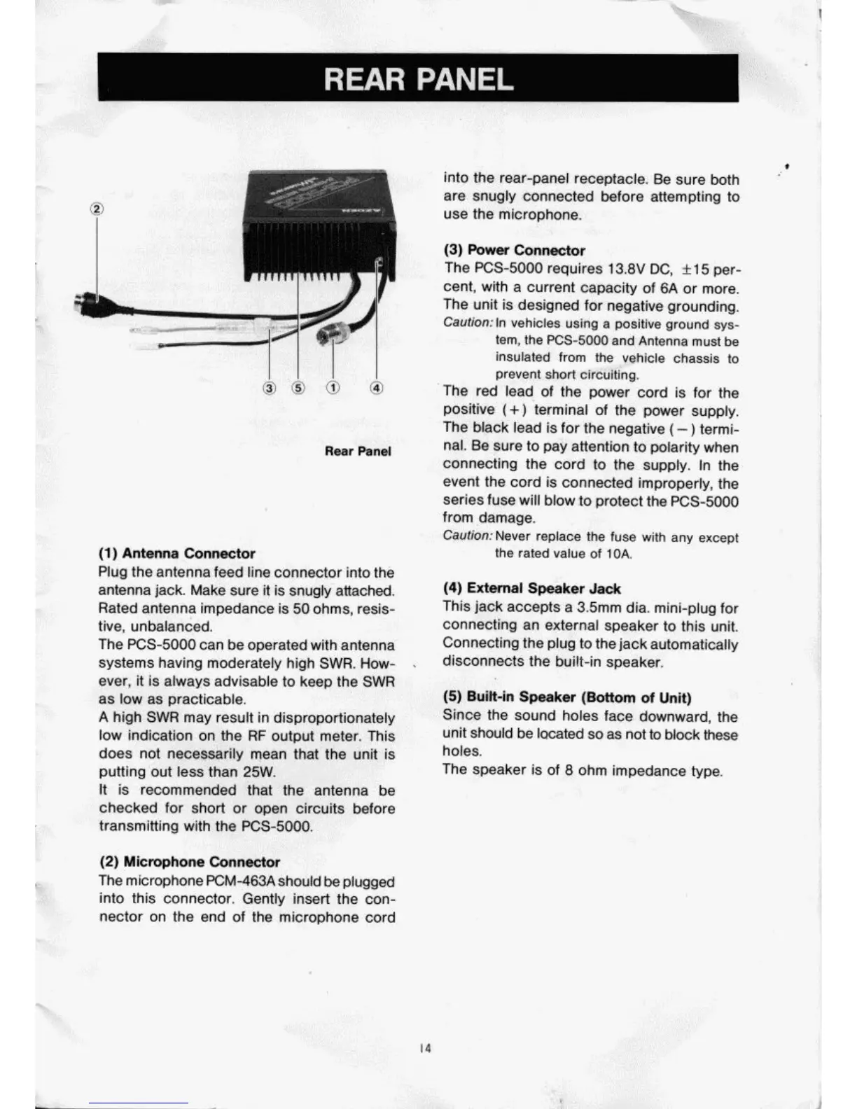 Azden PCS-5000 - Rear Panel; Antenna Connector; Microphone Connector; Power Connector