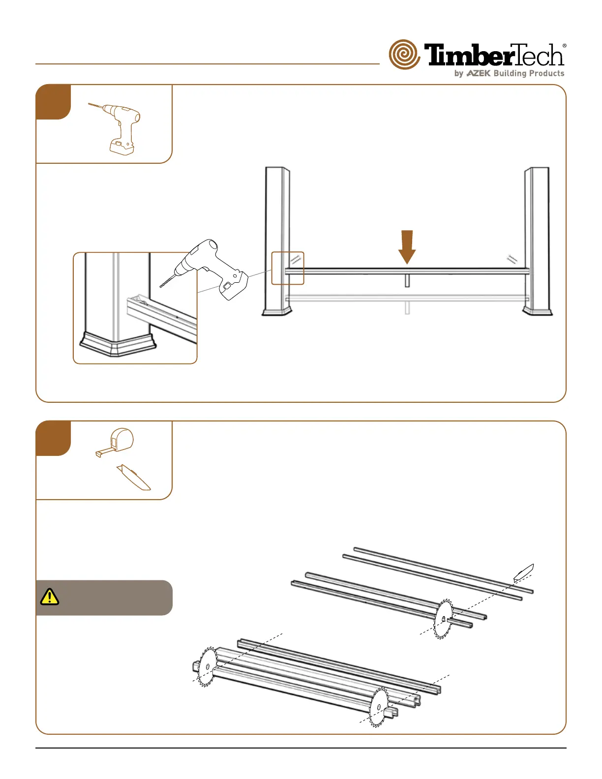 • Transfer measurement to Top & Universal Bottom Rails, Top Support Rail and cut