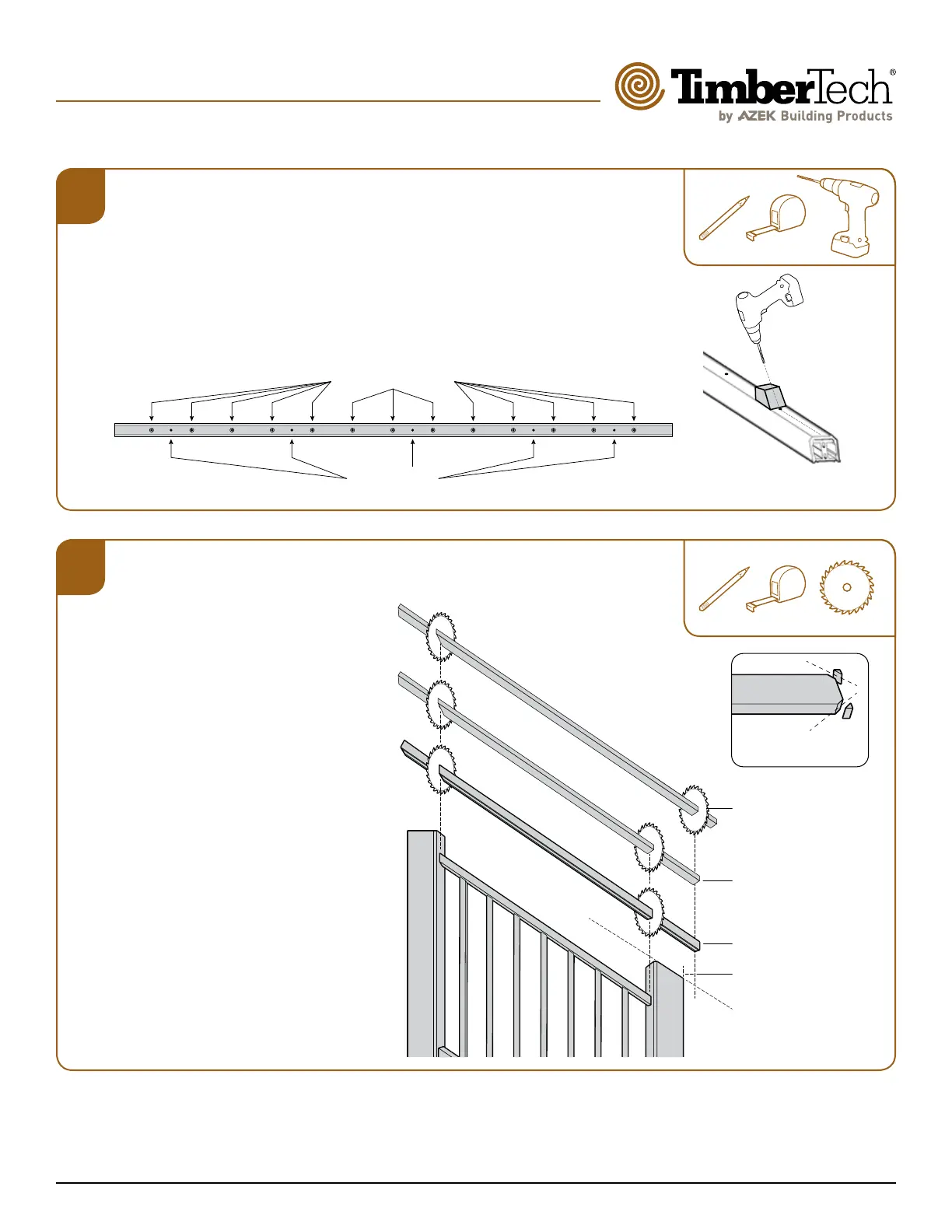 and second baluster at each end of the rail. These holes will be used to run anchoring