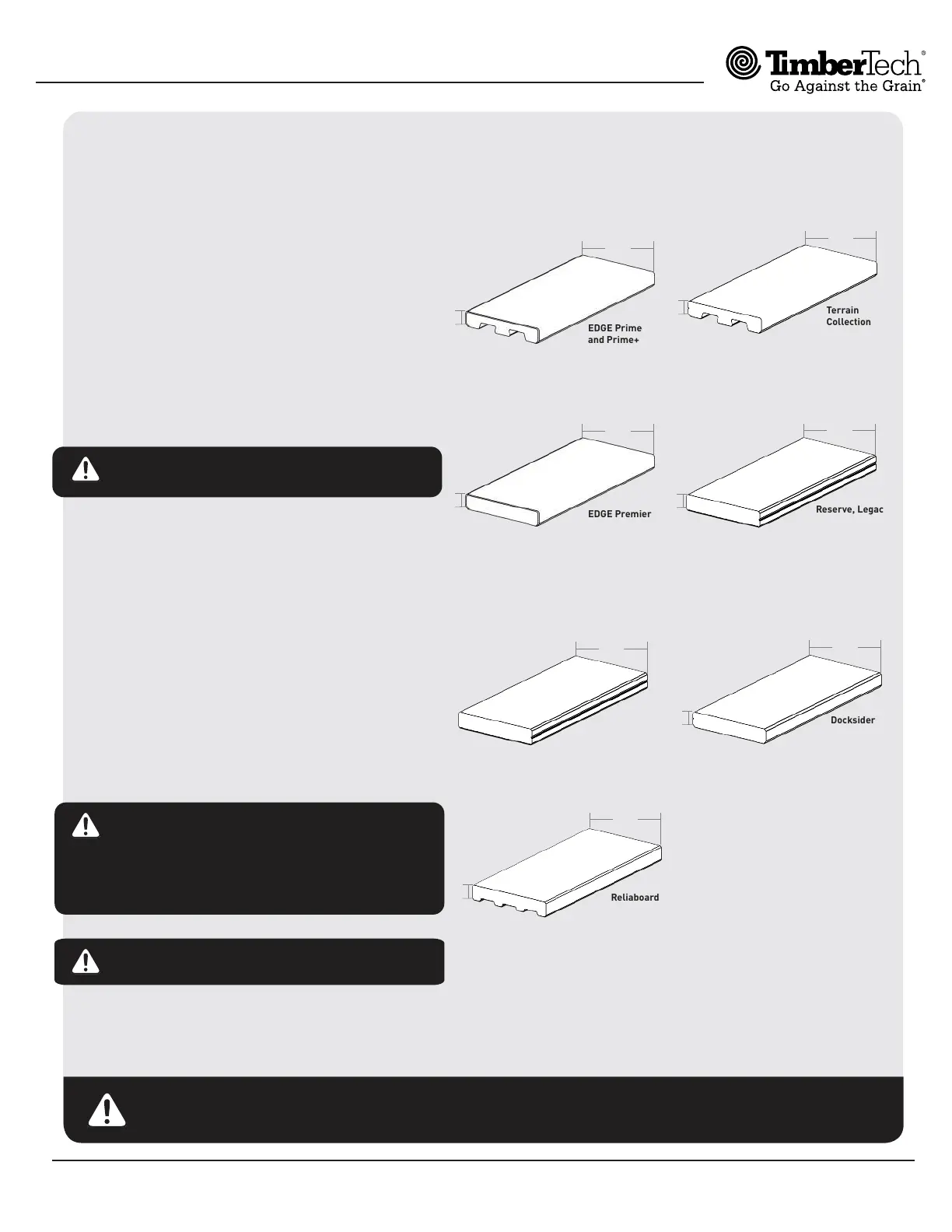 PRO, TimberTech EDGE, Reliaboard, TwinFinish, or