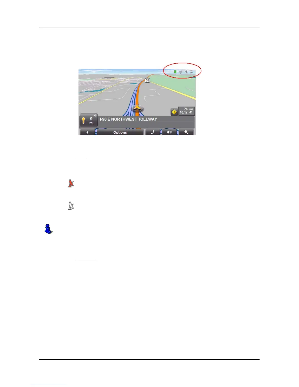 No Symbol The built-in GPS receiver is not operational. Contact customer