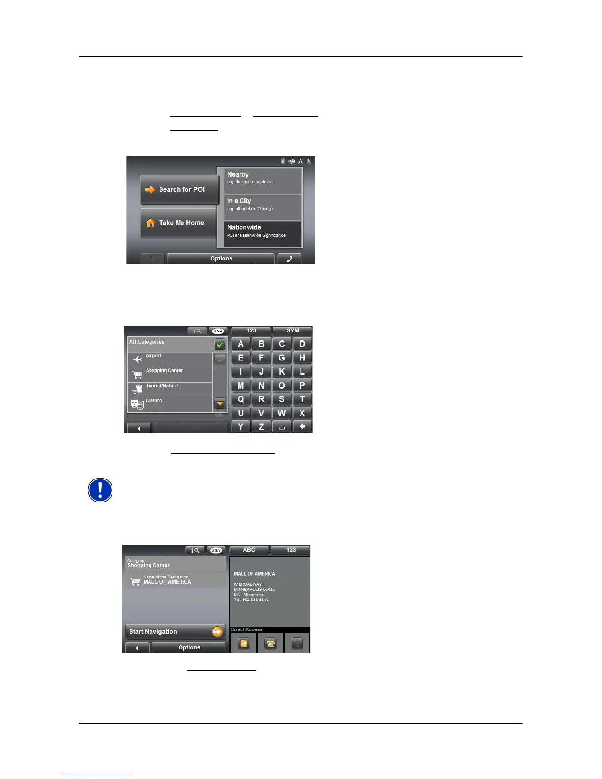 Enter the first characters from the beginning of the POI name to shorten the returned list