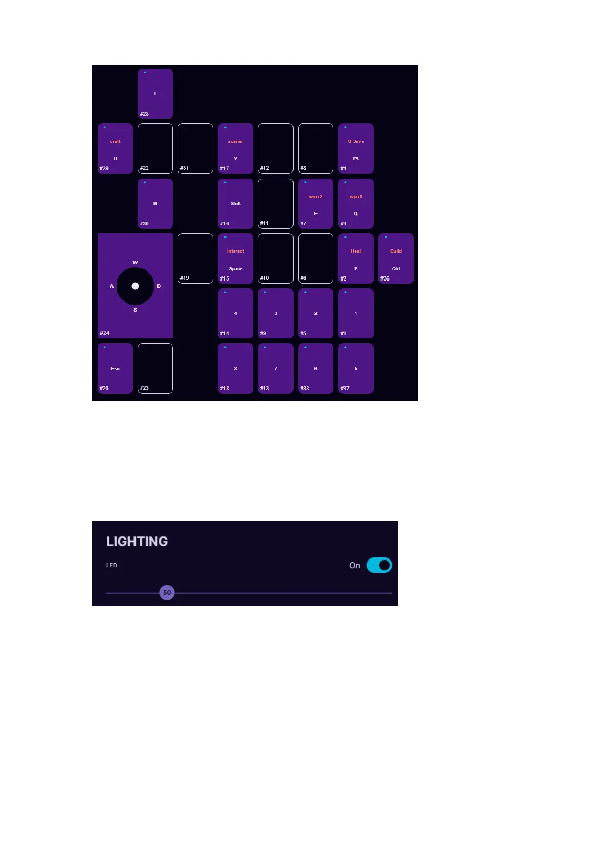 the side of the keypad. LED brightness slider adjusts the Profile LEDs. The
