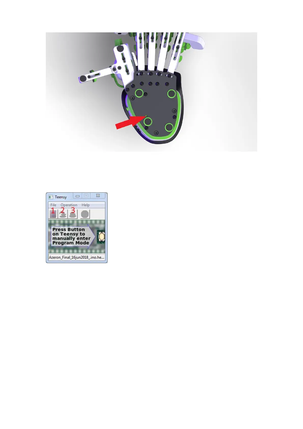 Wait until button 2 is available in the Teensy software. Then press button