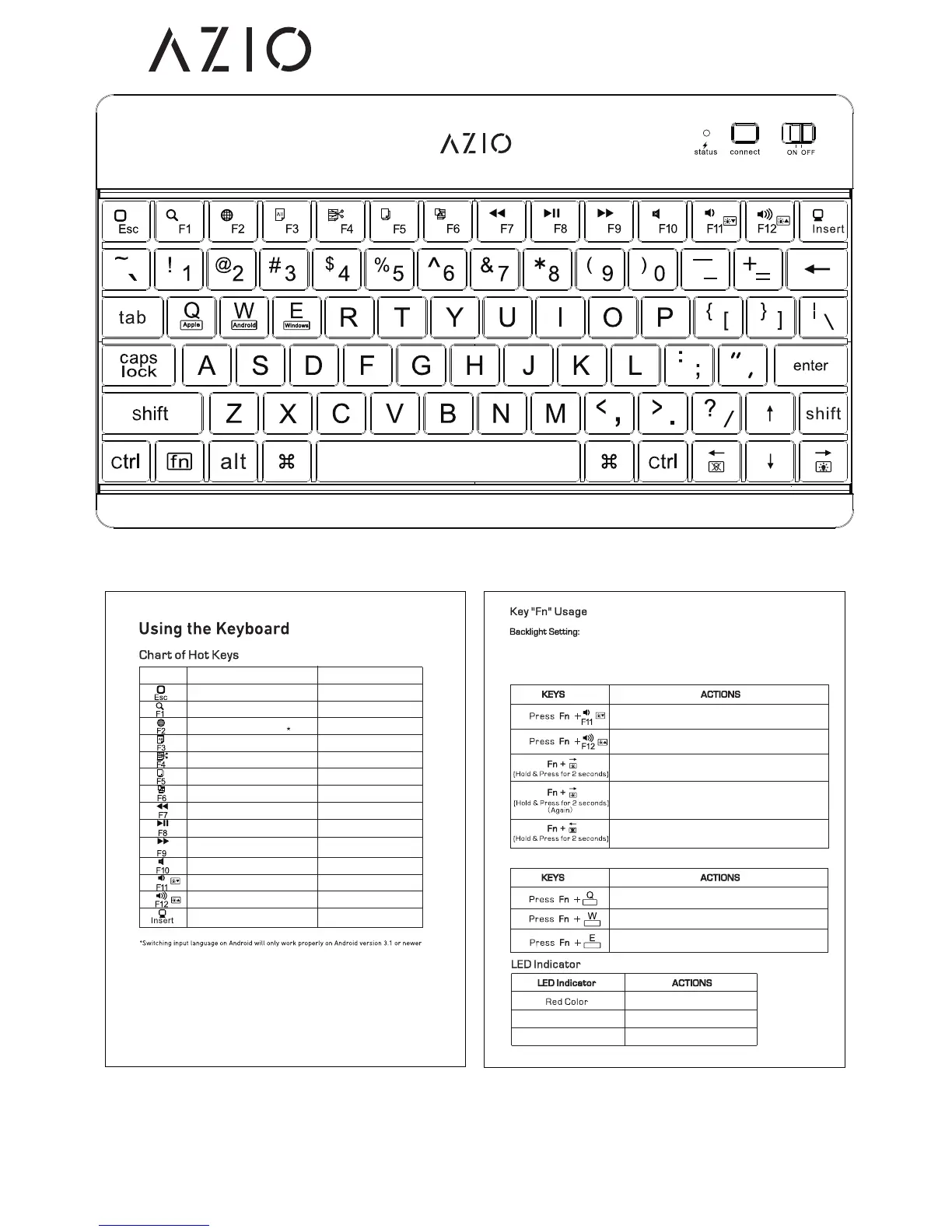pressing the “Fn” key simultaneously with the indicated modier key as shown