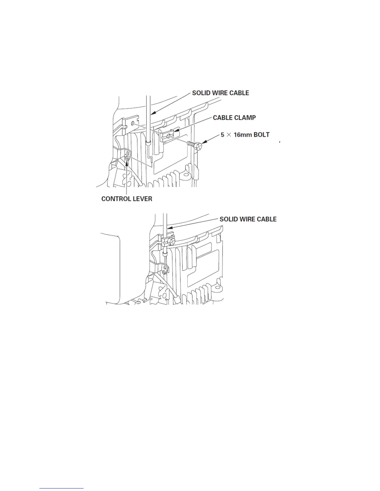 The control is provided with a hole for cable attachment. Install a solid wire cable as shown below.