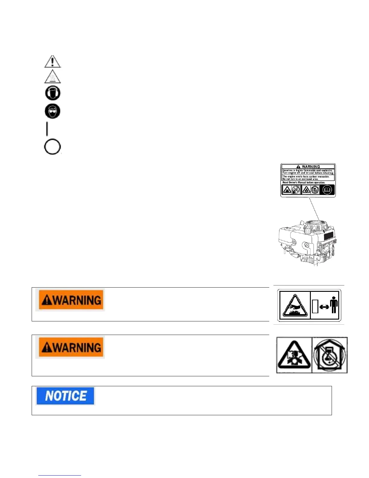 Do not remove machine/engine labels and/or WARNING stickers on machine