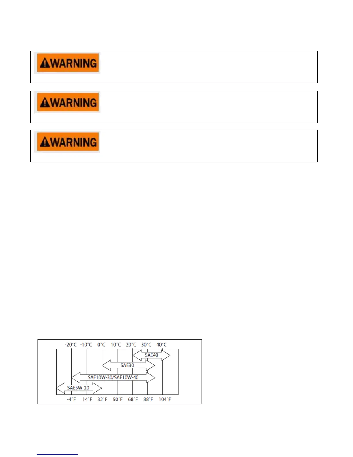 The following engine oils are recommended: API Service Classification: SF, SG, SH, or SJ.
