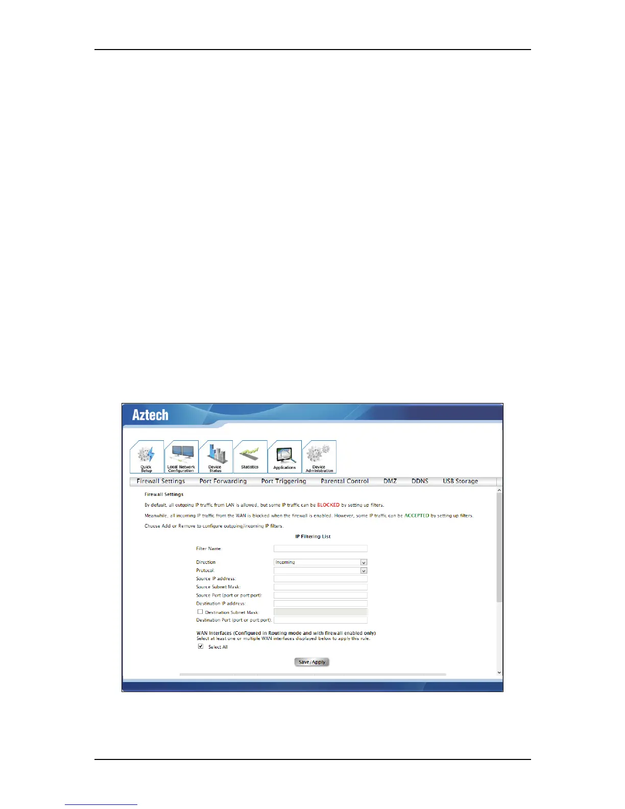 Allows you to configure Firewall Settings, add or remove Port Forwarding and