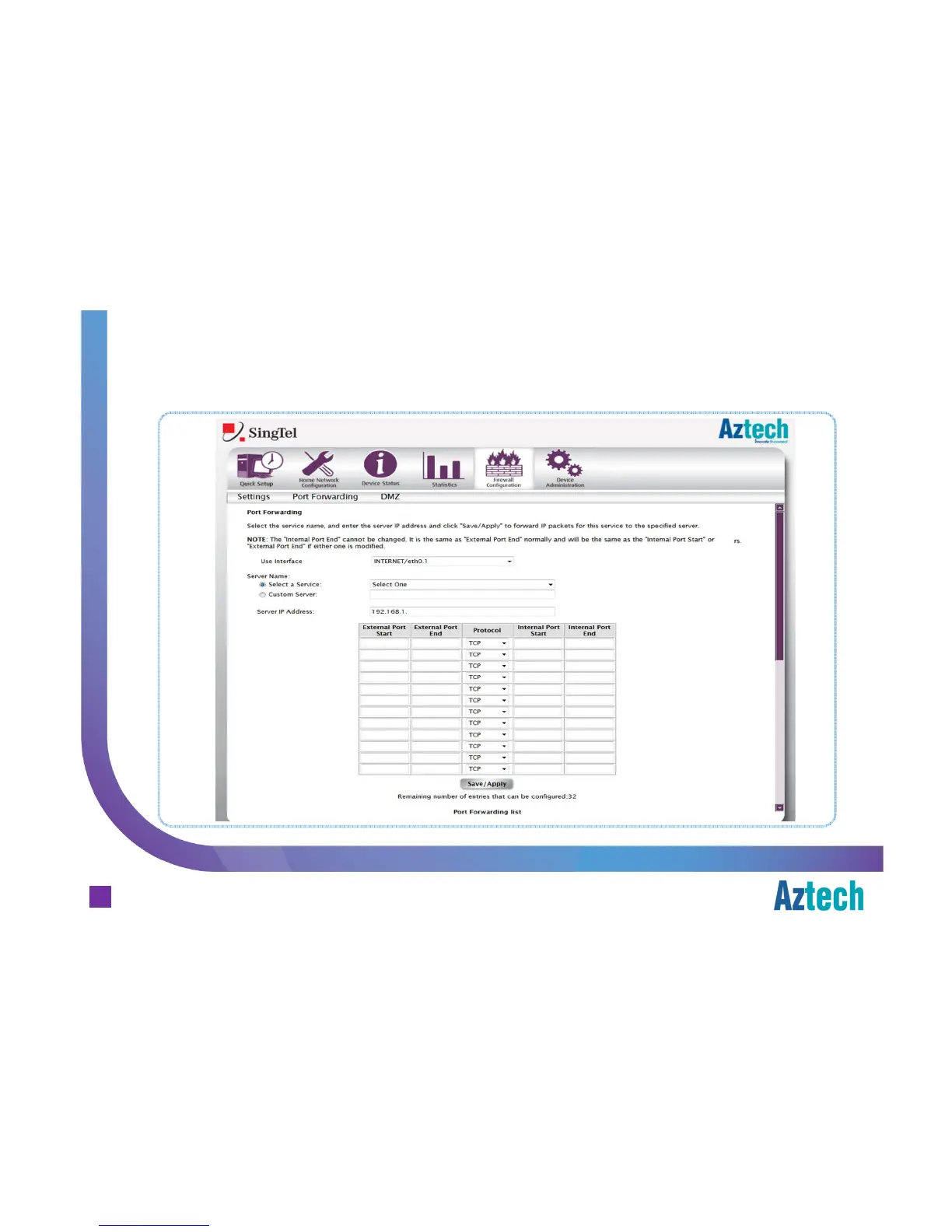 Aztech FG7003GRV(AC) - Port Forwarding Configuration