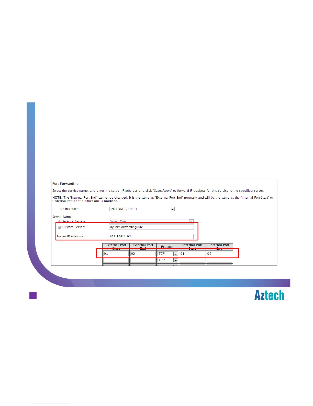 Step 6. Fill in the respective port numbers to be forwarded to the server.