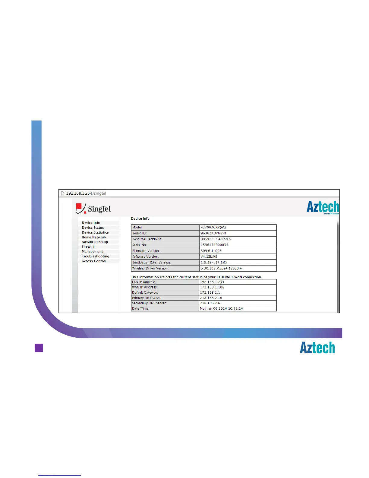 Step 1. Launch an internet browser and go to http://192.168.1.254/singtel