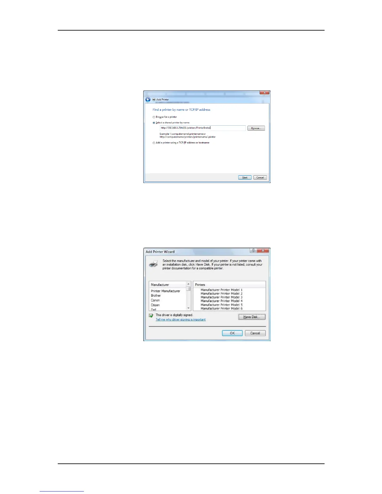 6. Click on Select a shared printer by name on the Find a printer by