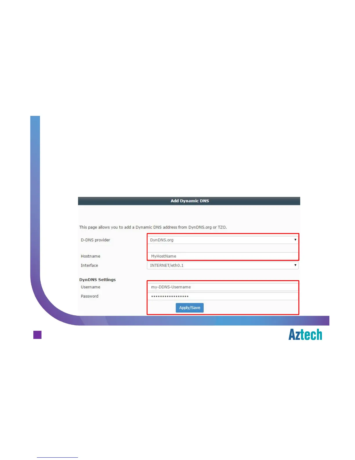 Step 6. Fill in the Hostname field with the registered hostname to the DDNS provider.