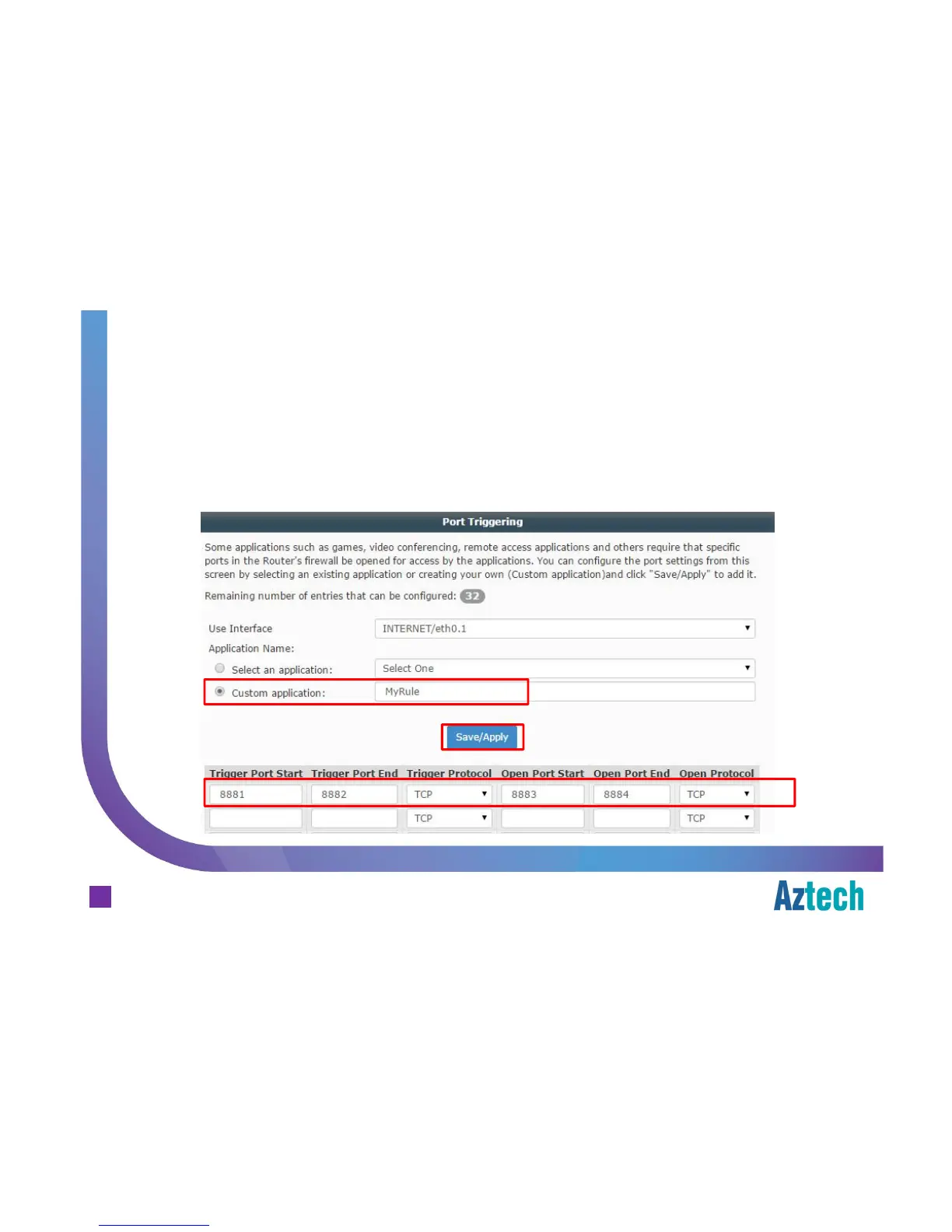 Step 5. Fill in the respective port numbers and protocol type and click Save/Apply