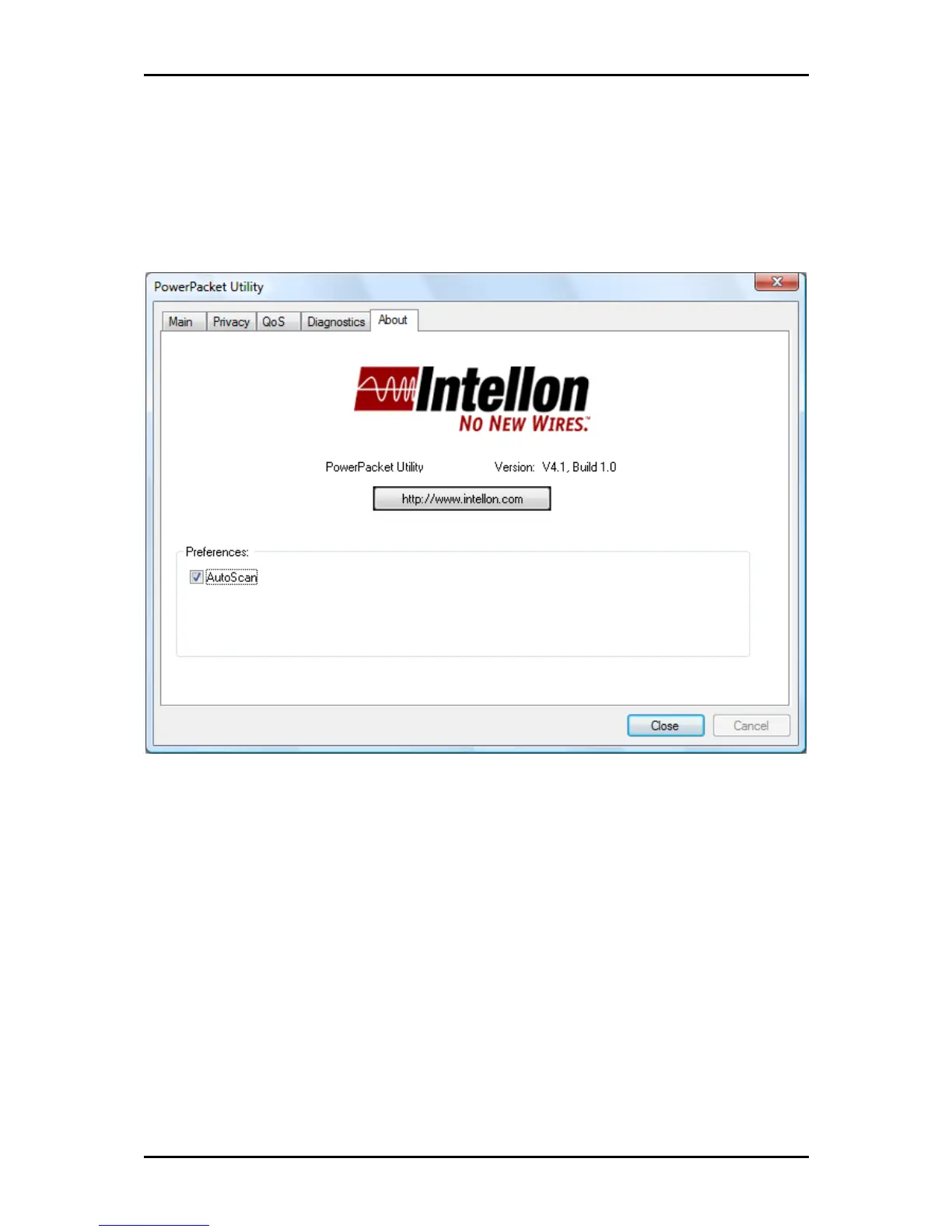 About displays the software version and preferences. The Autoscan preference is enabled