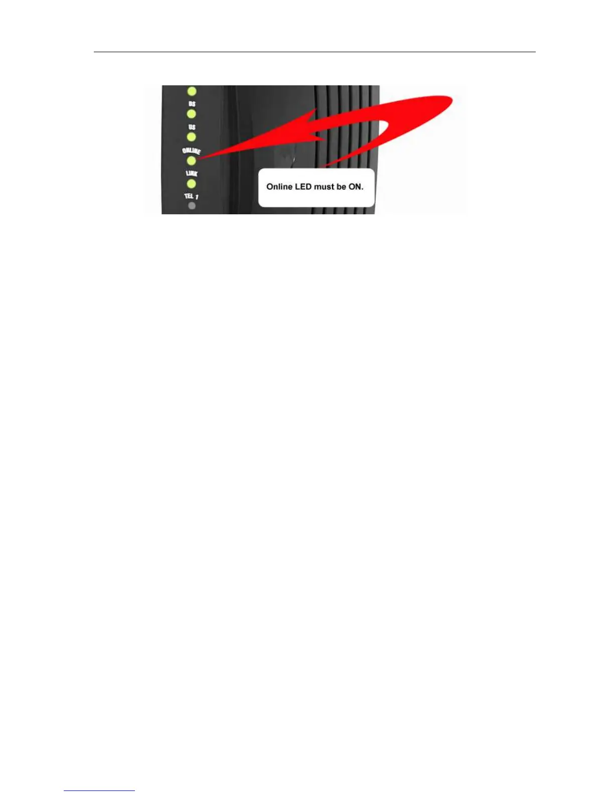16. Turn ON the cable modem and wait for the Online LED to become steady.