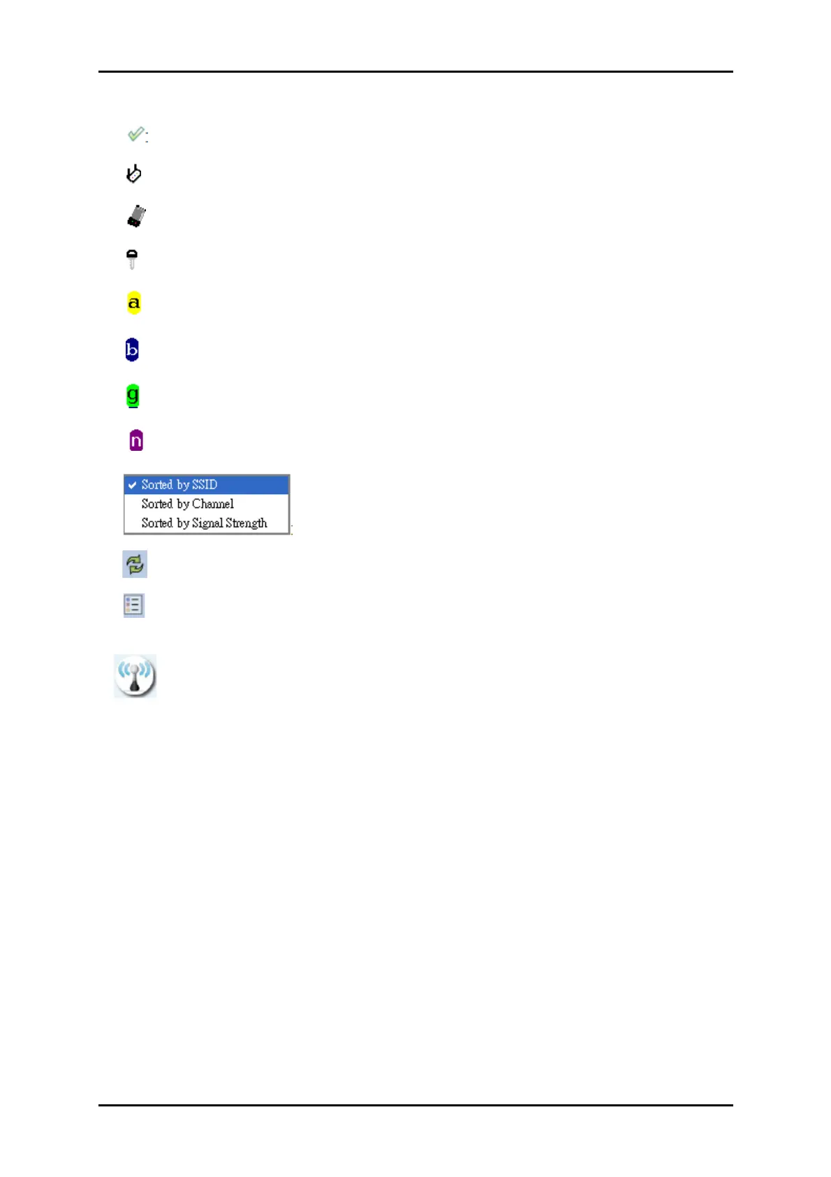 : Indicates that the AP list is sorted by SSID, Channel or Signal.
