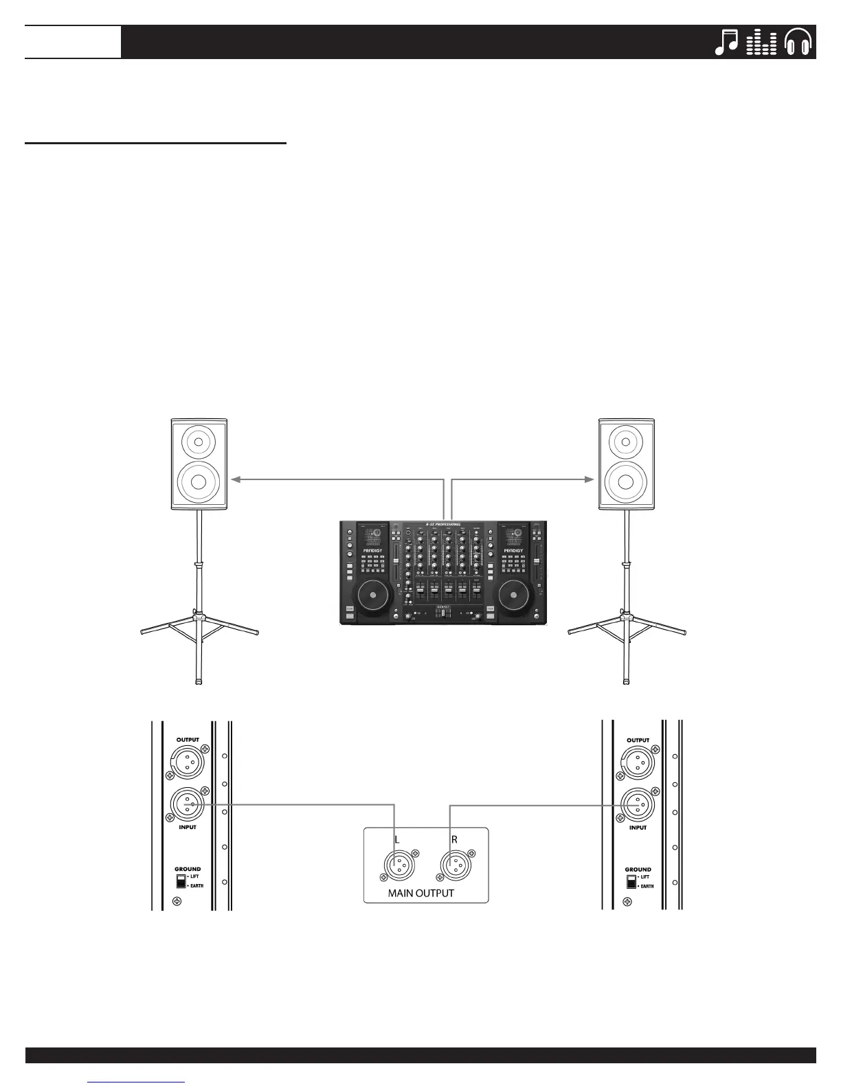console,inthisexample,aProdigyFX.TheleftchanneloutputfromthemixerisconnectedtotheINPUT