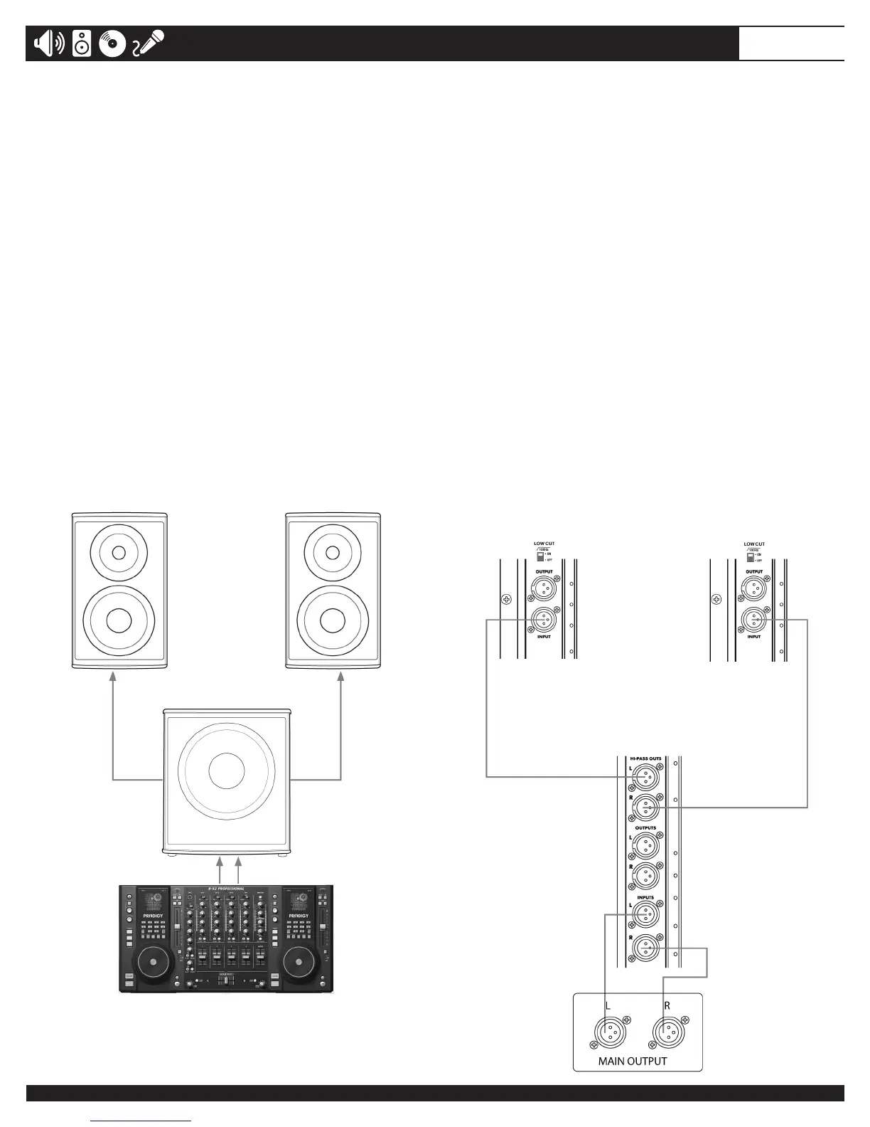 on the left full-range cabinet. Likewise, the Right HP OUTPUT from the ACTPRO18S is connected to the right