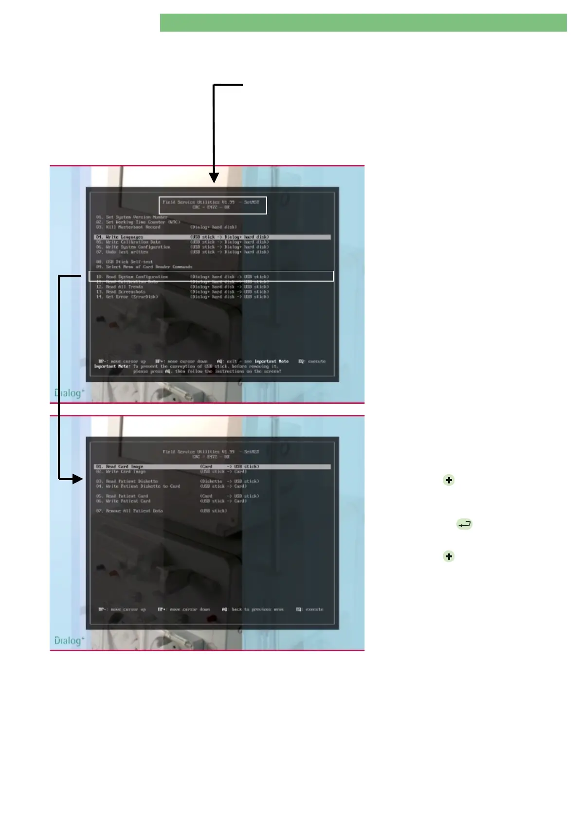 Main Menu Field Service Utilities